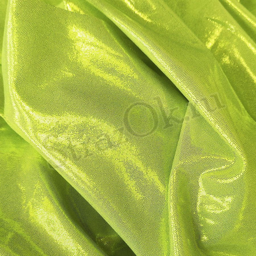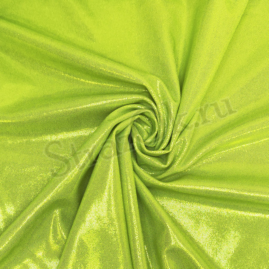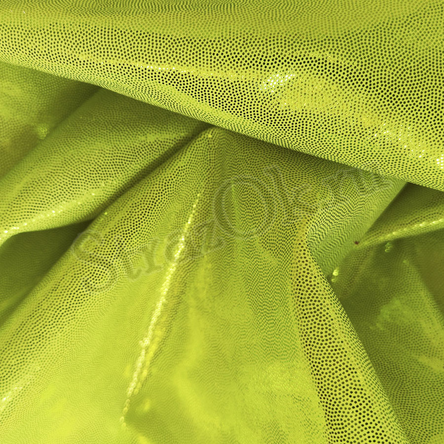 Яркая блестящая трикотажная ткань - голографический Бифлекс специально создана для сценических нарядов и костюмов для выступления. Рисунок голограмма выполнен в виде мелких лимонных металлизированных точек, блесток на желто-лимонной основе.