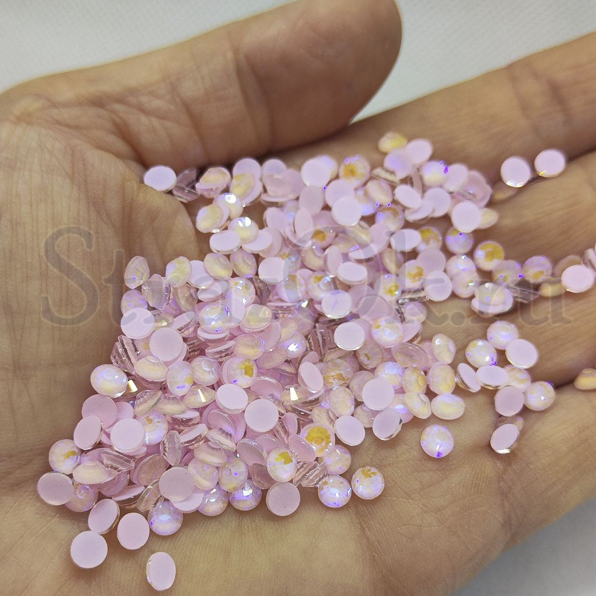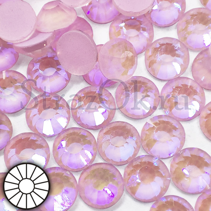 Цвет – Light Rose AM Ambient, полупрозрачный светло-розовый кристалл с эффектом опала и дополнительным блеском и переливом.