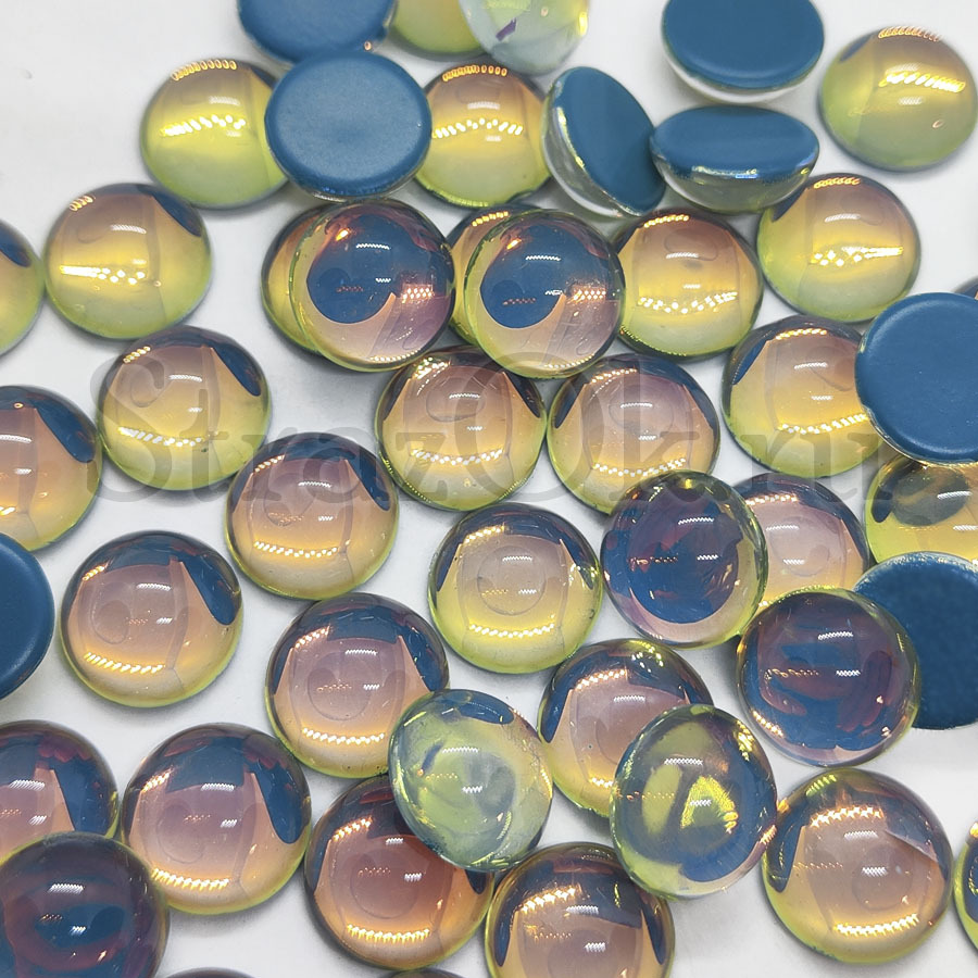 Стеклянные кабошоны - полусферические изделия из ювелирного стекла с различными цветовыми решениями и эффектами. Дно кабошона плоское с фольгированным покрытием, внешняя сторона имеет гладкую, выпуклую, хорошо отполированную поверхность. Кабошоны используются для декорировании различных предметов и одежды. Благодаря плоскому дну их можно приклеить практически к любой поверхности. Украшенная одежда или аксессуары кабошонами приобретает оригинальный, неповторимый вид и объем. Поэтому их можно использовать для декорирования сценических костюмов, кокошников, платьев для выступления, купальников для художественной гимнастики, праздничных нарядов, сумок, клатчей, обуви и многого другого.