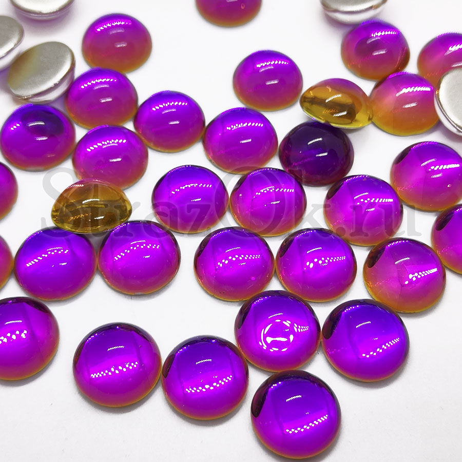 Стеклянные кабошоны - полусферические изделия из ювелирного стекла с различными цветовыми решениями и эффектами. Дно кабошона плоское с фольгированным покрытием, внешняя сторона имеет гладкую, выпуклую, хорошо отполированную поверхность. Кабошоны используются для декорировании различных предметов и одежды. Благодаря плоскому дну их можно приклеить практически к любой поверхности. Украшенная одежда или аксессуары кабошонами приобретает оригинальный, неповторимый вид и объем. Поэтому их можно использовать для декорирования сценических костюмов, кокошников, платьев для выступления, купальников для художественной гимнастики, праздничных нарядов, сумок, клатчей, обуви и многого другого.