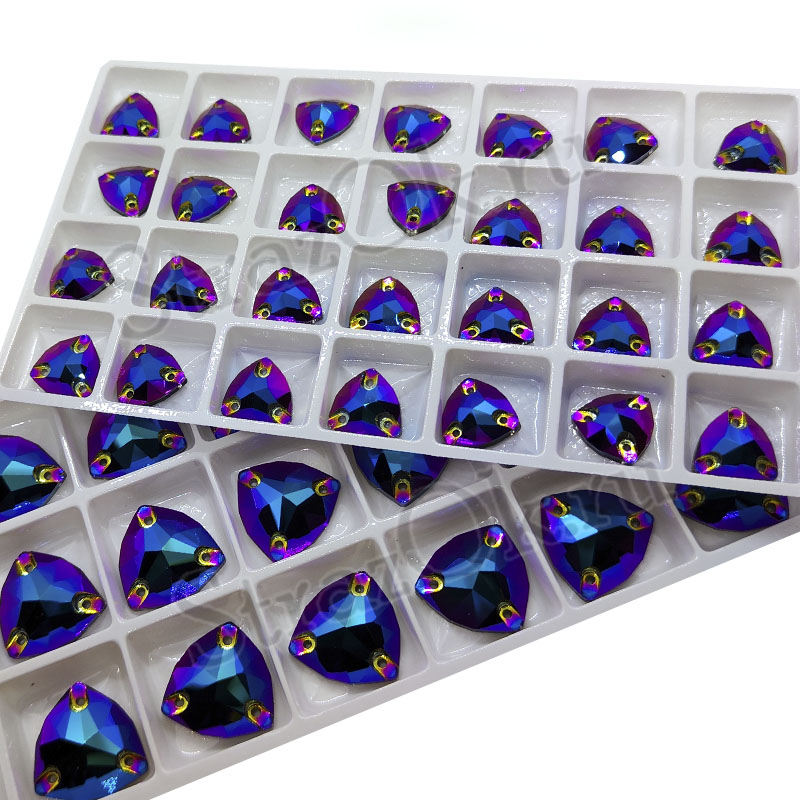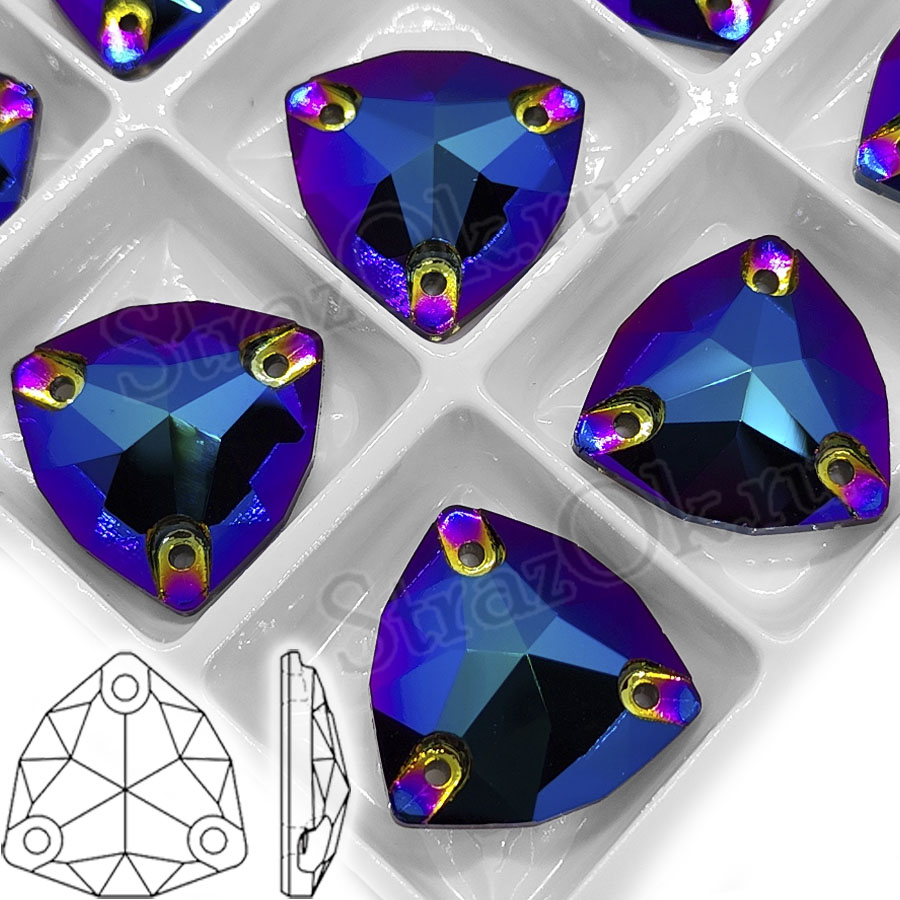 Стразы пришивные хрустальные в форме объемного треугольника Trilliant.