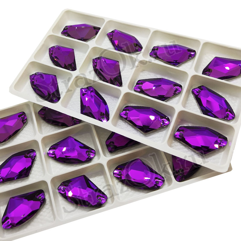 Стразы изготовлены из ювелирного стекла (Хрусталь) с высокой степенью преломления света. Имеют идеально ровную огранку, тонкое основание, обладают ярким блеском и насыщенным цветом. Имитация кристаллов Swarovski Сваровски, аналог. Благодаря редкой форме оригинально и изысканно смотрятся на одежде и аксессуарах. Прекрасно сочетаются со стразами других форм, таких как Cosmic, Triangle, Navette, Square. Используя стразы формы Galactic - можно воплотить самые смелые и современные дизайнерские решения в оформлении одежды. Ярко-аметистовый, насыщенный теплый фиолетовый цвет. Идеально подходит для украшения яркой праздничной одежды, платьев для бальных танцев, костюмов нарядов для выступления, купальников для художественной гимнастики Одежда украшенная стеклянными стразами пригодна для деликатной машинной стирки, стразы сохраняют первоначальных блеск и яркость цвета. Мы сами постоянно используем стразы для украшения купальников для гимнастики, поэтому предлагаем только самое лучшее по соотношению цены и качества. В интернет-магазине StrazOK.ru в Москве Вы также можете купить стразы оптом скидки до 30% на отдельные позиции.