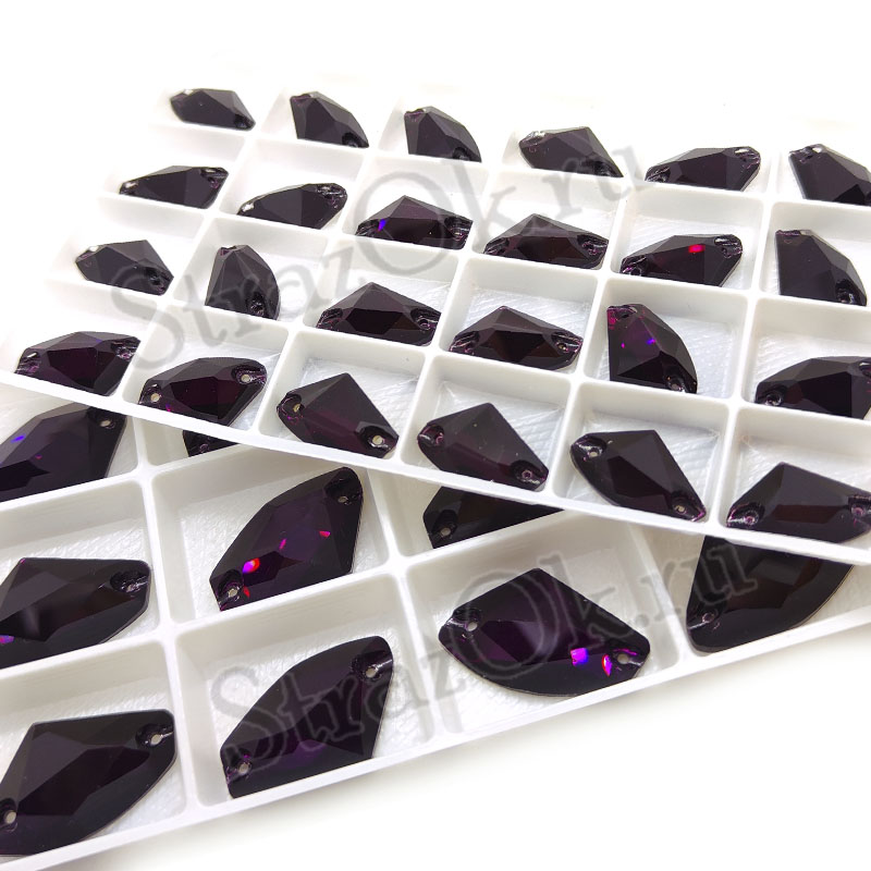 Стразы изготовлены из ювелирного стекла (Хрусталь) с высокой степенью преломления света. Имеют идеально ровную огранку, тонкое основание, обладают ярким блеском и насыщенным цветом. Имитация кристаллов Swarovski Сваровски, аналог. Благодаря редкой форме оригинально и изысканно смотрятся на одежде и аксессуарах. Прекрасно сочетаются со стразами других форм, таких как Cosmic, Triangle, Navette, Square. Используя стразы формы Galactic - можно воплотить самые смелые и современные дизайнерские решения в оформлении одежды. Ярко-аметистовый, насыщенный теплый фиолетовый цвет. Идеально подходит для украшения яркой праздничной одежды, платьев для бальных танцев, костюмов нарядов для выступления, купальников для художественной гимнастики Одежда украшенная стеклянными стразами пригодна для деликатной машинной стирки, стразы сохраняют первоначальных блеск и яркость цвета. Мы сами постоянно используем стразы для украшения купальников для гимнастики, поэтому предлагаем только самое лучшее по соотношению цены и качества. В интернет-магазине StrazOK.ru в Москве Вы также можете купить стразы оптом скидки до 30% на отдельные позиции.
