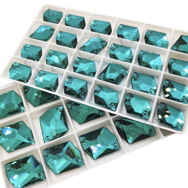 Cosmic, Dark Aquamarine - пришивные стразы формы Cosmic Космик (неправильный ромб)  цвета морской волны, темно-аквамариновые, изумрудно-синие..