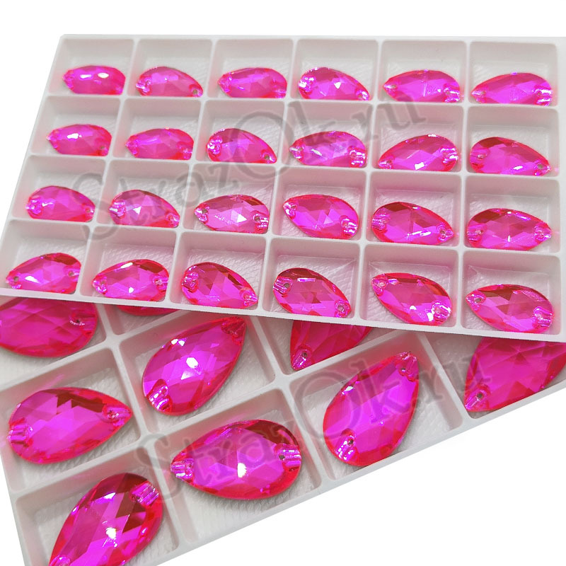 Стразы пришивные стеклянные хрустальные в форме Drop Капля. Это яркие стразы с плоским дном и двумя отверстиями для пришивания.