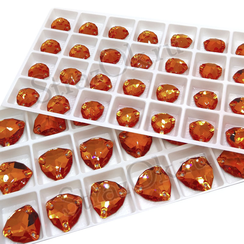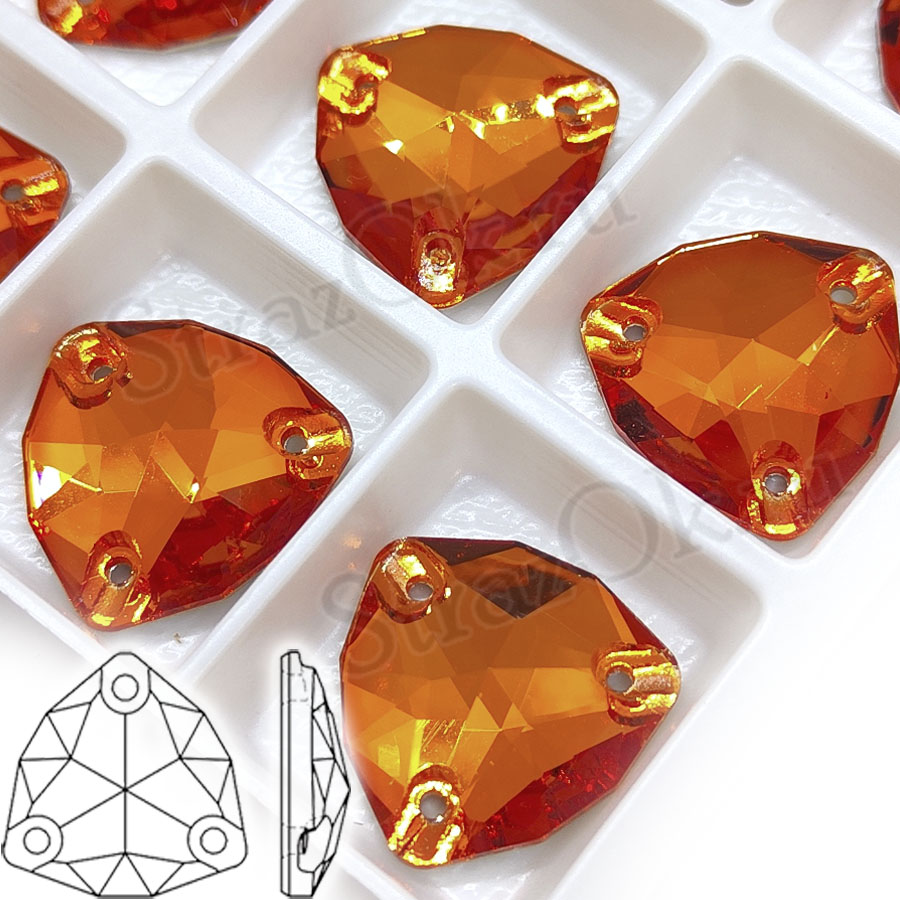 Стеклянные пришивные стразы форма объемного треугольника - Trilliant. Стразы с плоским дном и тремя отверстиями для пришивания. Предлагаем для Вас стразы высокого качества.