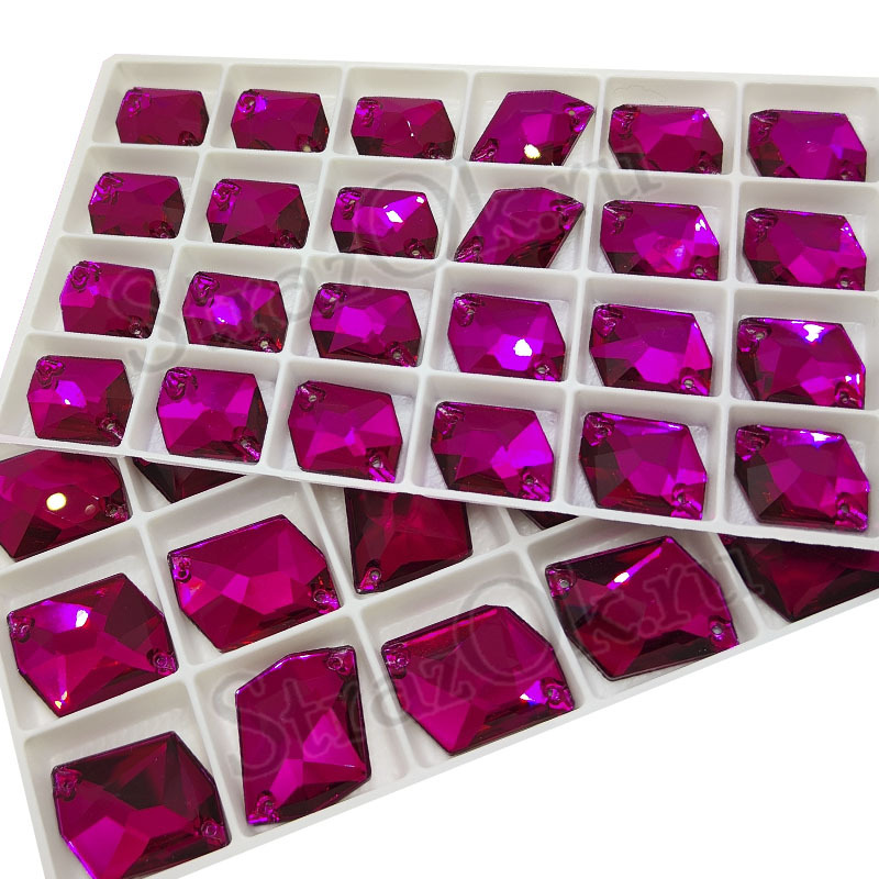 Пришивные стразы формы Cosmic Космик (неправильный ромб) рубинового цвета.